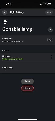 - Select Lights and choose the light you want to reset.